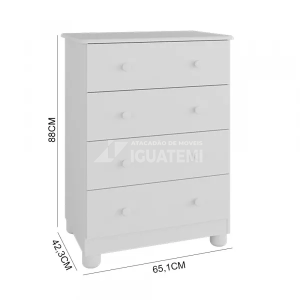 Este móvel comporta colchão de 12 cm de altura (máxima permitida); 70 cm de largura e 130 cm de comprimento. O colchão NÃO ACOMPANHA o berço.