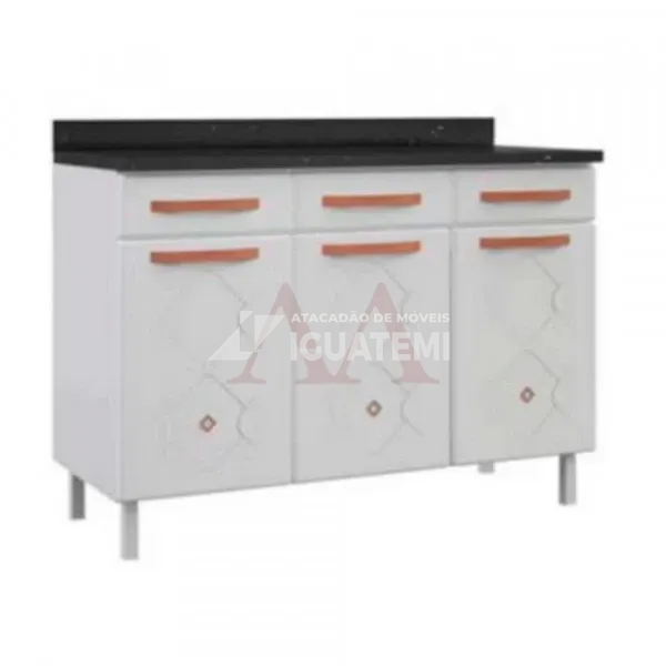 O balcão triplo com tampo New Mirage da Telasul vai deixar sua cozinha mais bonita e elegante.