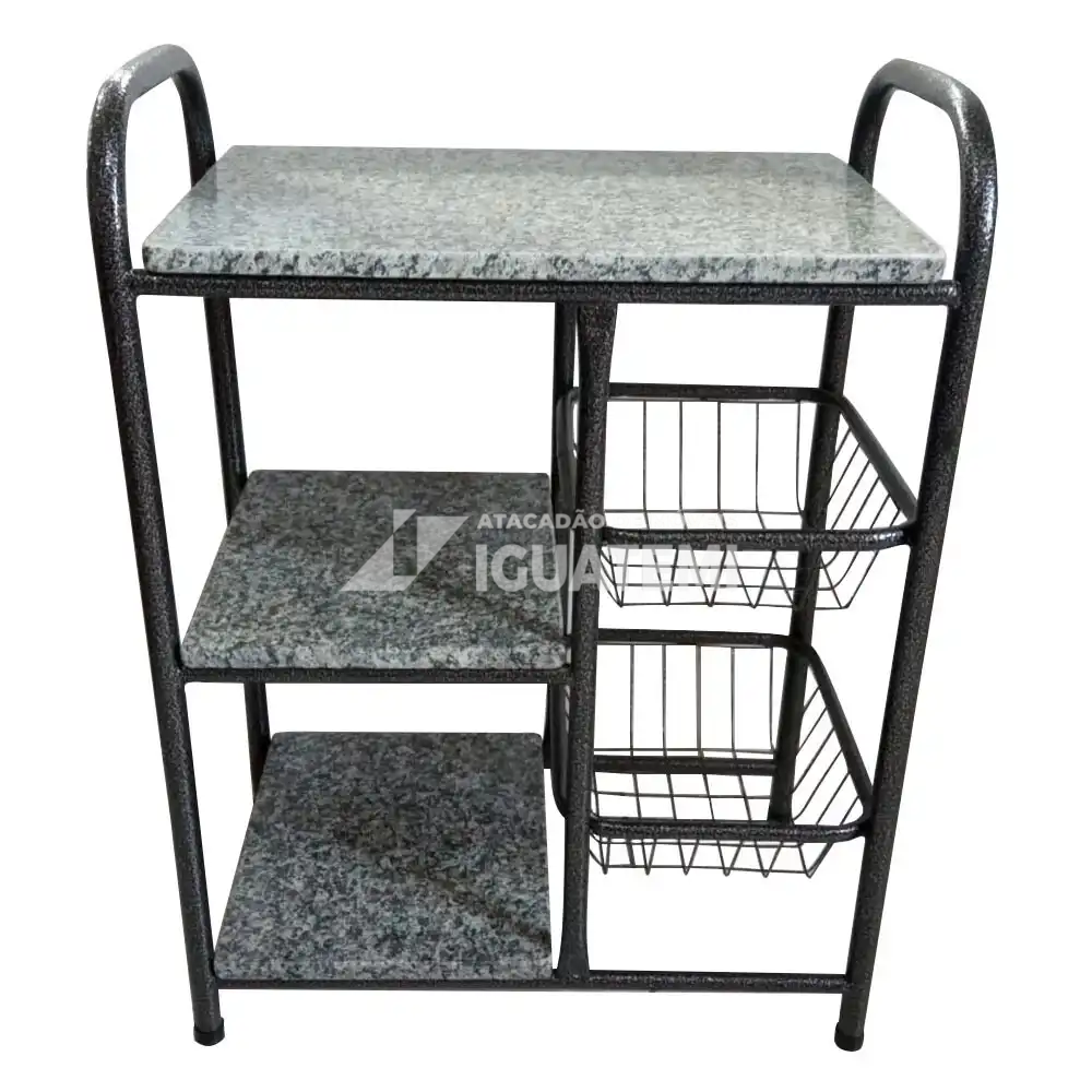 FRUTEIRA SERRA TUBOS P/ MICRO 90CM C/GRANITO 2 CESTAS PRETO MARTELADO