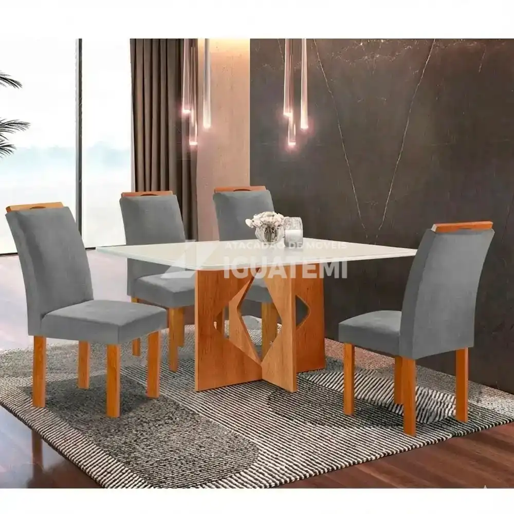 O Conjunto de Mesa Milão com 4 cadeiras da cel moveis dará muito charme e elegância para a sua sala.