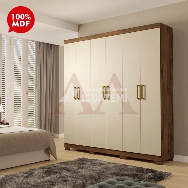 Adicione charme no seu quarto com o roupeiro de seis portas Milena da Panan.