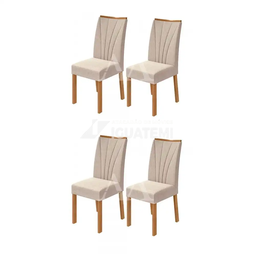 CJ 04 CADEIRAS LOPAS APOGEU TEC/ VELUDO NATURALLE CREME AMENDOA CLEAN