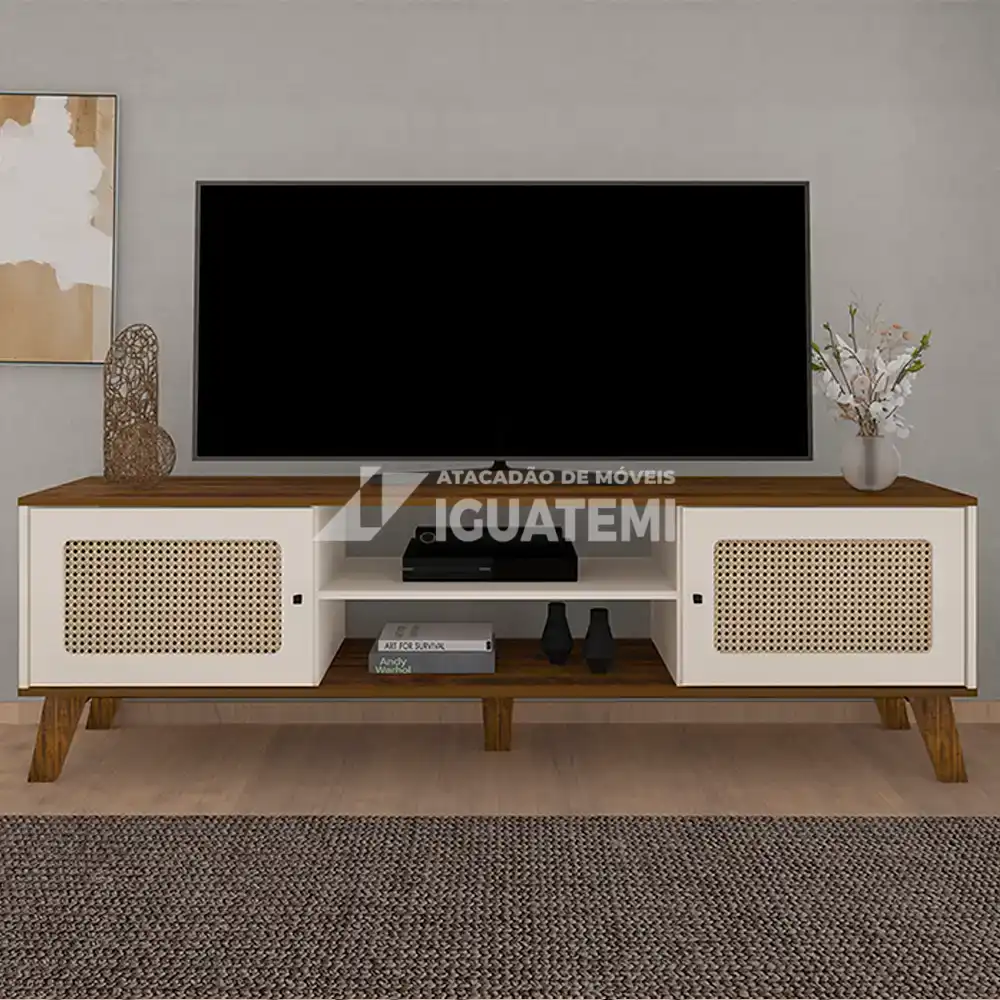 O Rack Charlotte é uma ótima opção para ser usado em ambientes pequenos, pois é compacto e funcional. Este produto suporta com segurança TV de até 75 polegadas.