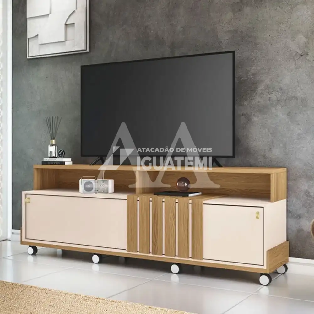 O rack Graci da HB é ideal para pequenos ambientes. Este móvel suporta uma TV de até 70 polegadas.